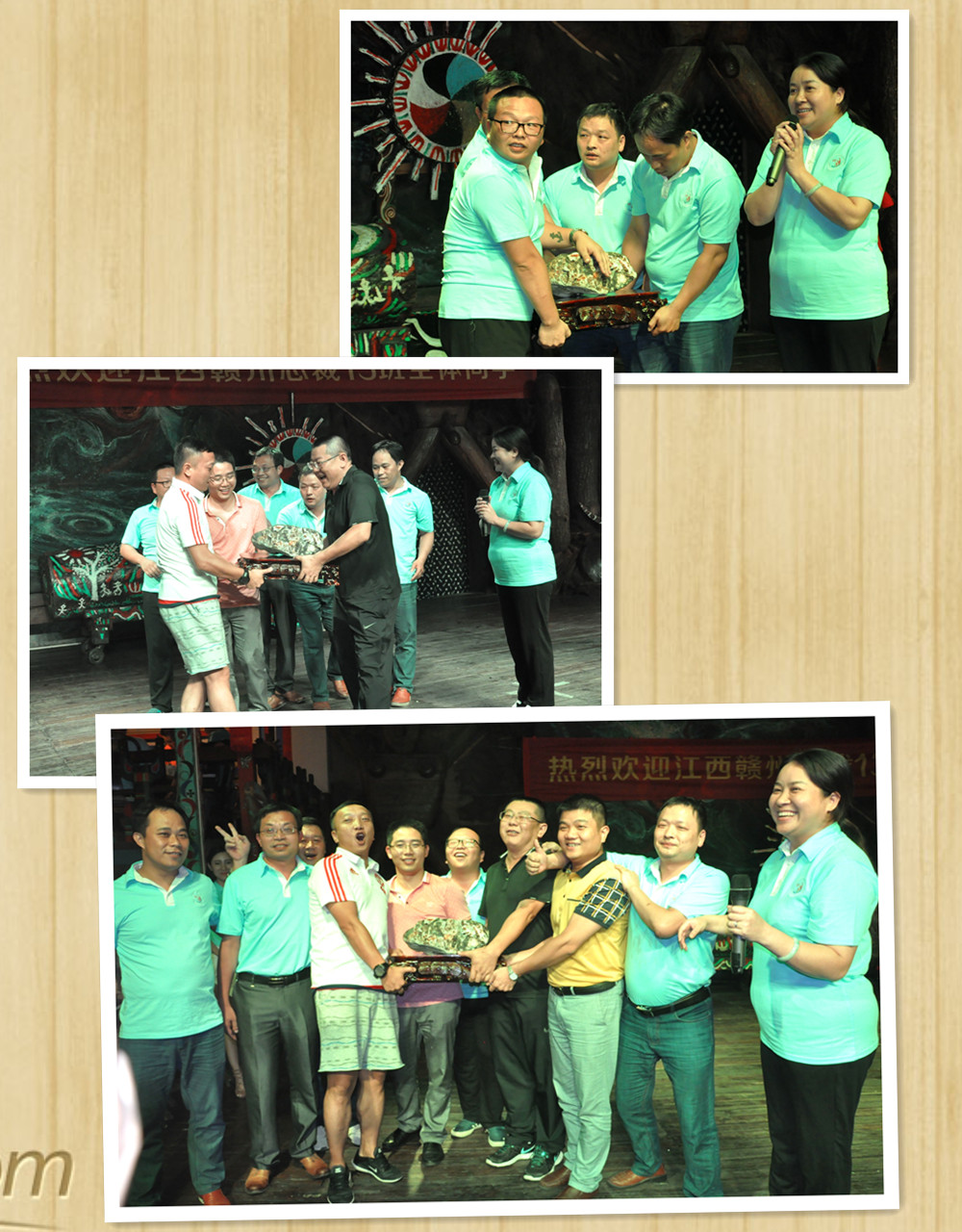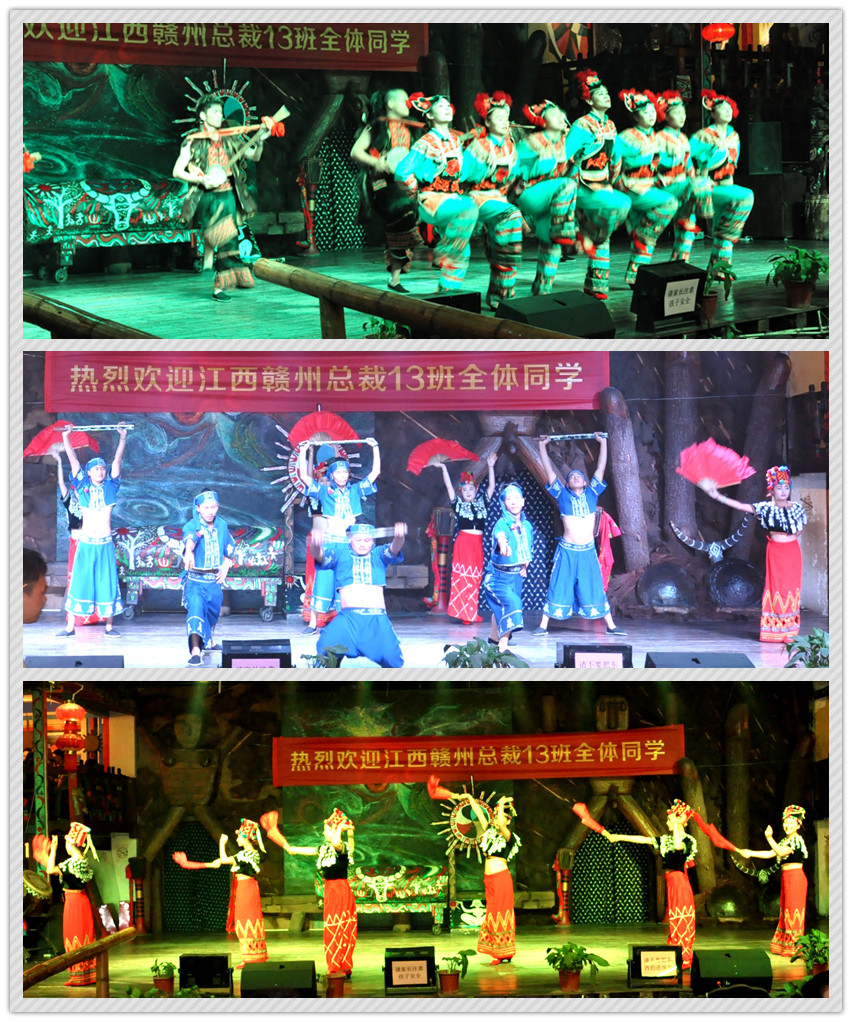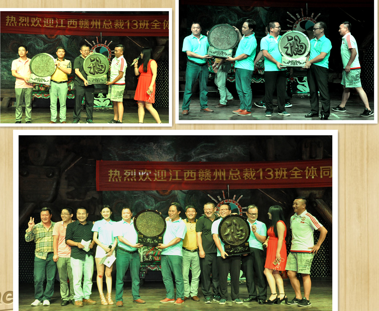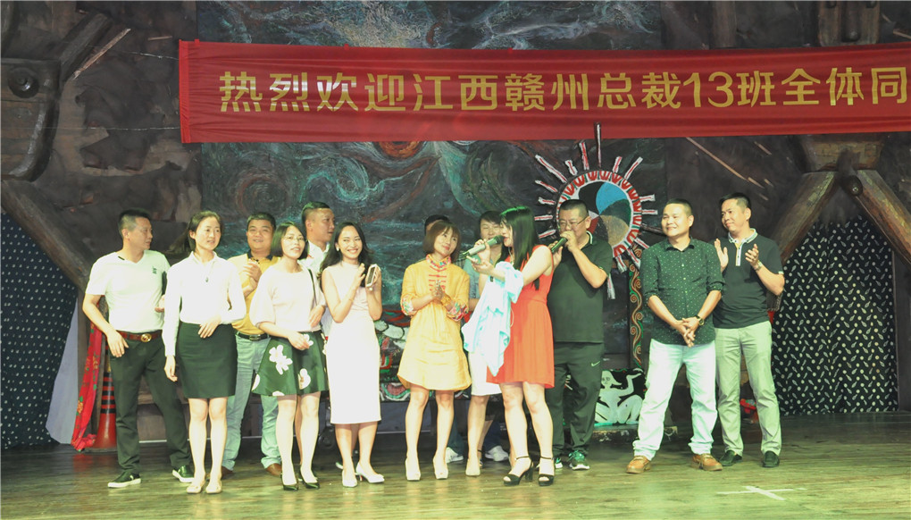 交换礼物结束,两班学员进行才艺表演。赣州的同学在舞台上共同演唱了班歌《无悔这一生》,同学们情绪高昂,歌声嘹亮而动人。云大总裁班的同学则献唱了《传奇》。