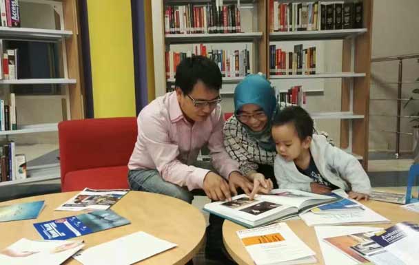 2016年,白艳一家三口在巴基斯坦comsats大学图书馆参加活动。