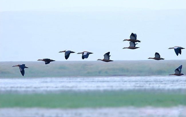 白雁经常聚集到湖边,许多白雁常在那里挑选合适的地方栖息。