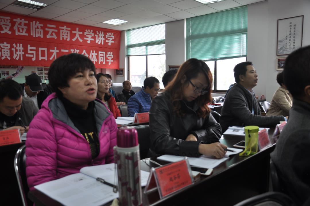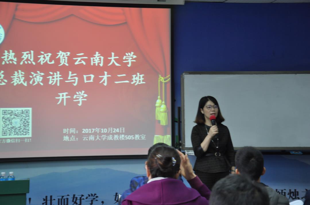 目前,云南大学总裁演讲与口才二班的课程正在进行中,如果您也害怕公众演讲,如果您也觉得自己需要改变,那您可以加入总裁演讲与口才班,还您一个“能说、敢说、会说”的自己。