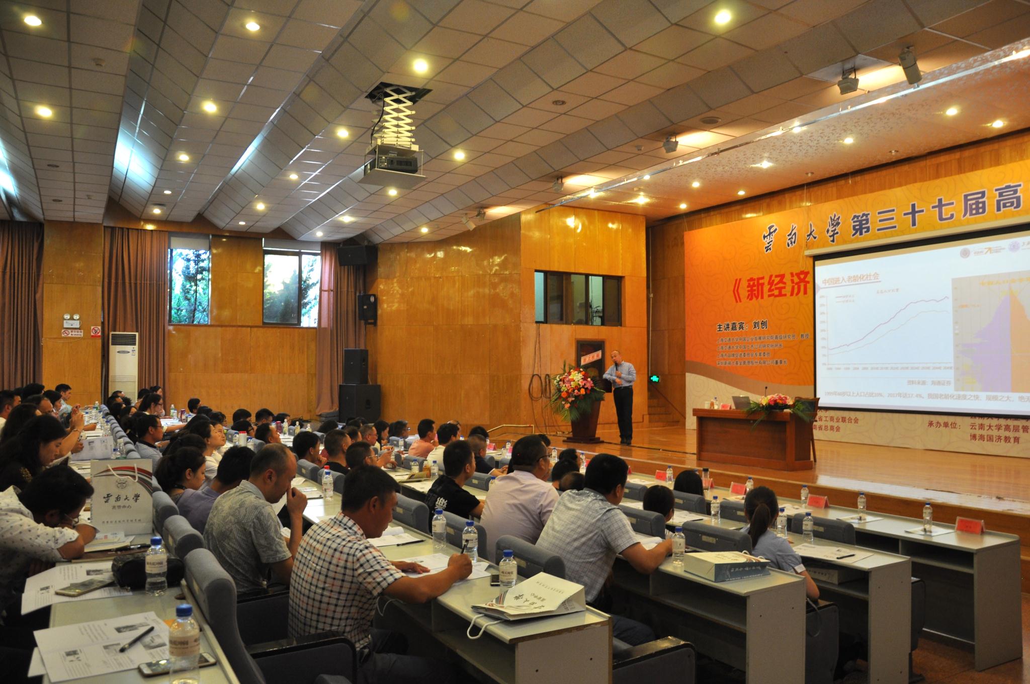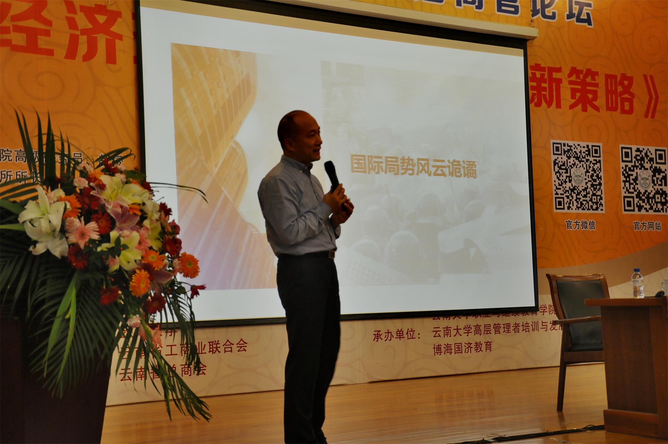 7月18日,云南大学第三十七届高管论坛在云南大学科学馆一楼报告厅成功举行。论坛邀请了上海交通大学中国上市公司研究所所长、深圳新骑士基金管理股份有限公司董事长刘创教授,与400多名来自云南大学EMBA总裁班的学生以及社会各界的来宾相聚于此,围绕“新经济下的企业竞争新战略”主题进行了分享与交流。