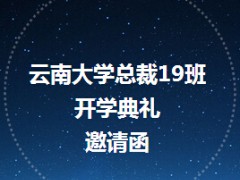 云南大学总裁19班将隆重举行开学典礼。时间:2015年8月27日(周五)13:30地点:云南大学成教楼505