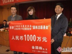 10月8日,专项用于开展公益性志愿服务活动的“国栋志愿基金”以1000万资金正式设立,这是云南省志愿者协会和云南省青少年发展基金会联合设立的第一个专项志愿基金。 云南大学总裁三班金国栋及夫人蒋玉娟向