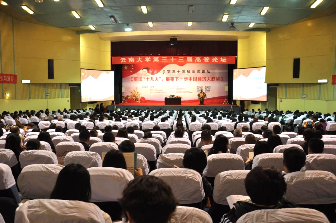 11月16日,云南大学第三十三届高管论坛在云南大学庆来堂开幕,800余名云南大学EMBA高级总裁研修班学员齐聚,著名经济学家史炜教授围绕《解读“十九大”,展望下一步中国经济大趋势》的主题进行分享与交流。