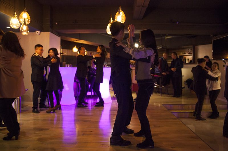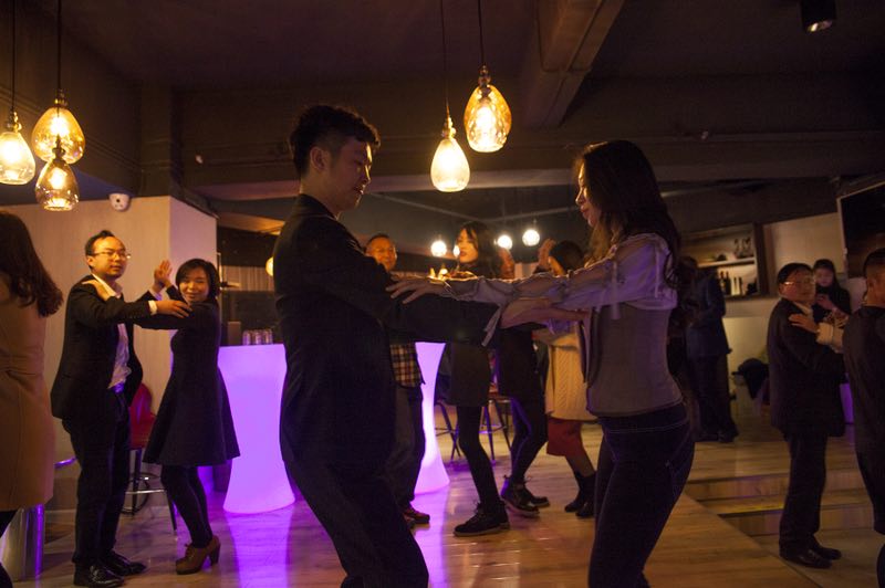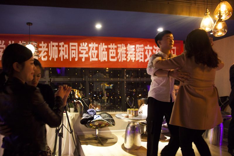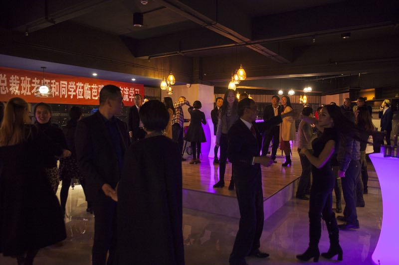 晚宴过后,同学们来到李防正同学投资的舞蹈工作室学习跳莎莎舞。