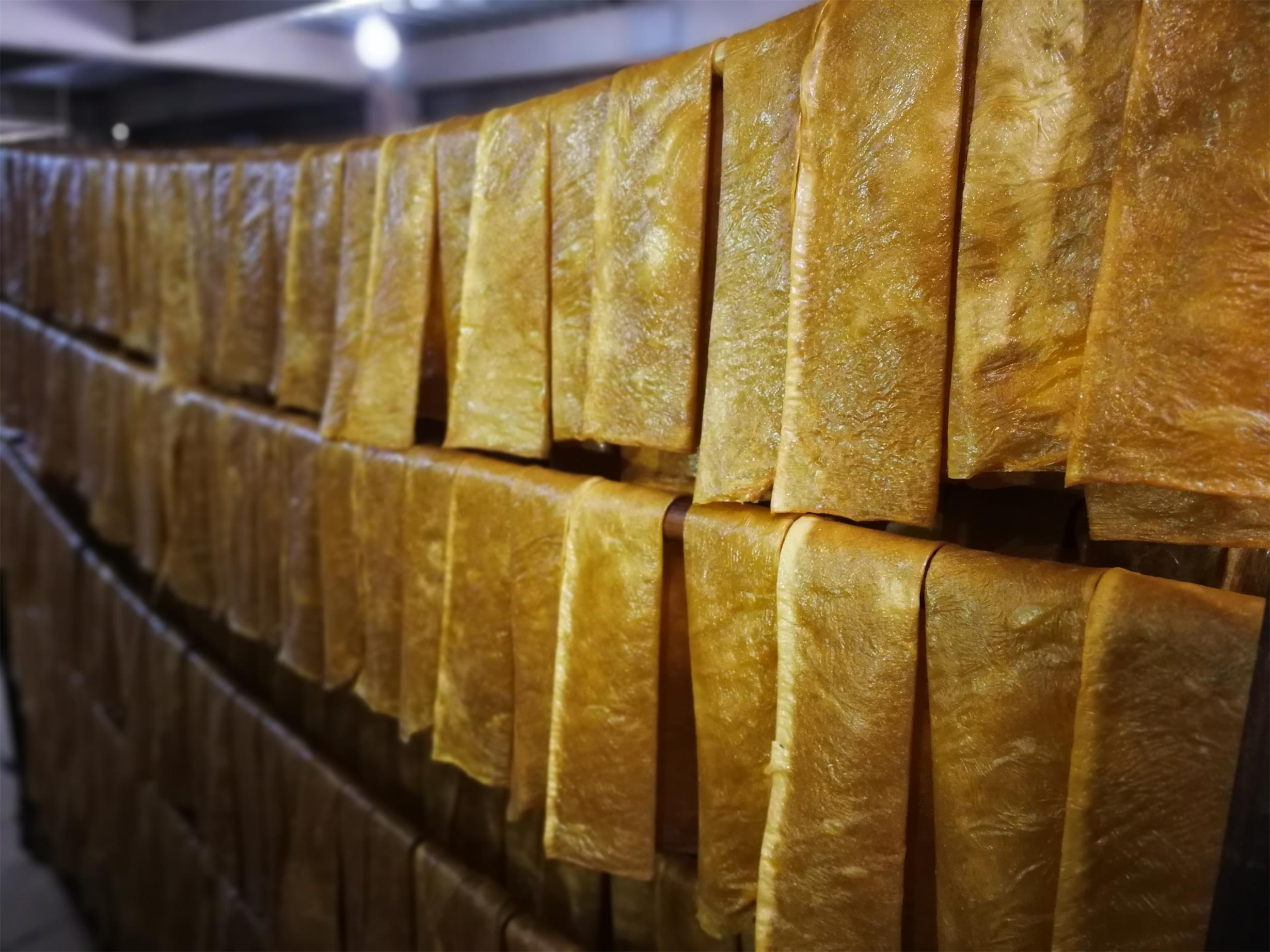 公司生产的豆制品主要选用了黑龙江优质黄豆为原料,采用传统工艺与现代技术相结合,实行全封闭无污染化生产,高温、红外、真空灭菌的包装流程,制作出了一系列豆制品类产品,如豆腐皮、豆皮结等系列,产品达到国家卫生、质量安全标准。