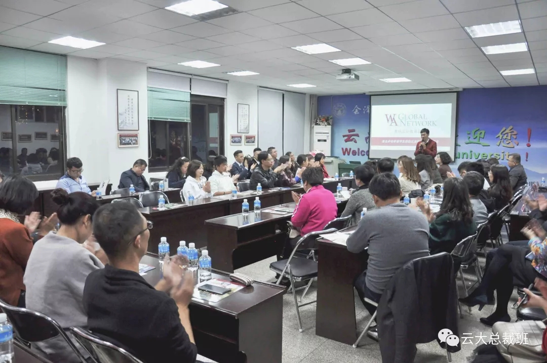 11月5日晚,云南大学总裁班第四十六期“传递智慧·接力辉煌”系列学习沙龙——“留学美国名校的三重门”于云南大学本部成教楼505教室正式开展。