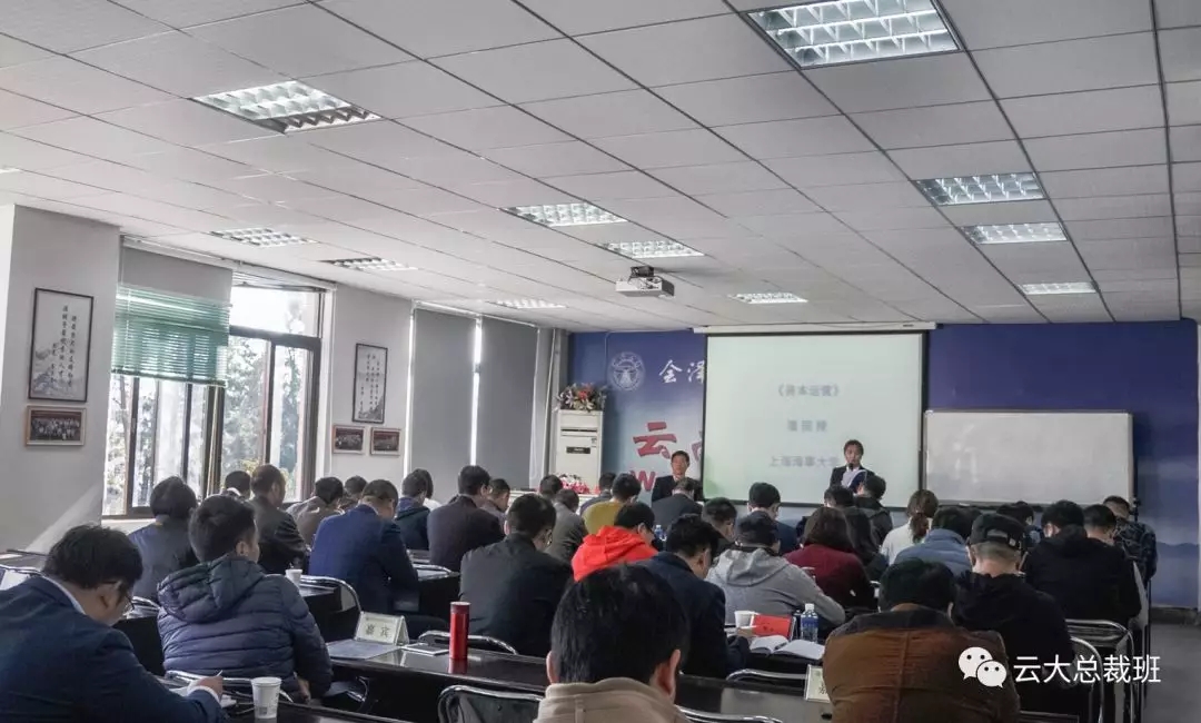 进入立冬,冬日暖阳透过淡淡的云层倾泻在整个云大校园,阳光既有甜蜜的云朵的味道,又有大地的清新,透过厚重的冬衣,直把人的心房也照得暖暖的。11月16日,在这温暖、安逸的冬日校园,总裁27、28班的同学迎来潘国陵老师的《资本运作与投融资管理》课程。