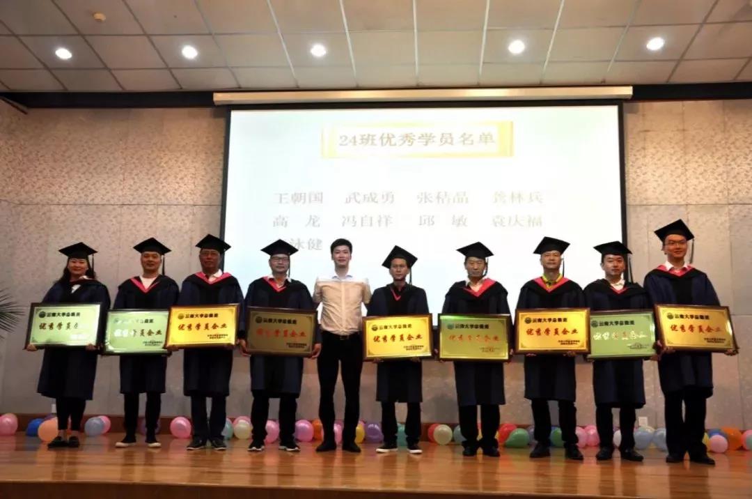 2019年6月21日下午13:30,云南大学总裁24班,25班的同学在科学馆迎来了属于他们的结业典礼。经过一年的学习,同学们完成云南大学高级总裁研修班学业。云南大学高层管理者培训与发展中心总顾问赵海博老师,云南大学高层管理者培训与发展中心主任王玮老师、副主任张萍萍老师、云南大学高管中心发展部部长张挺出席了结业典礼。典礼由高管中心唐榕蔓老师、魏鹏燕老师主持,在主持人的带领下云大总裁研修24班,25班同学身着统一的硕士服参加了典礼。