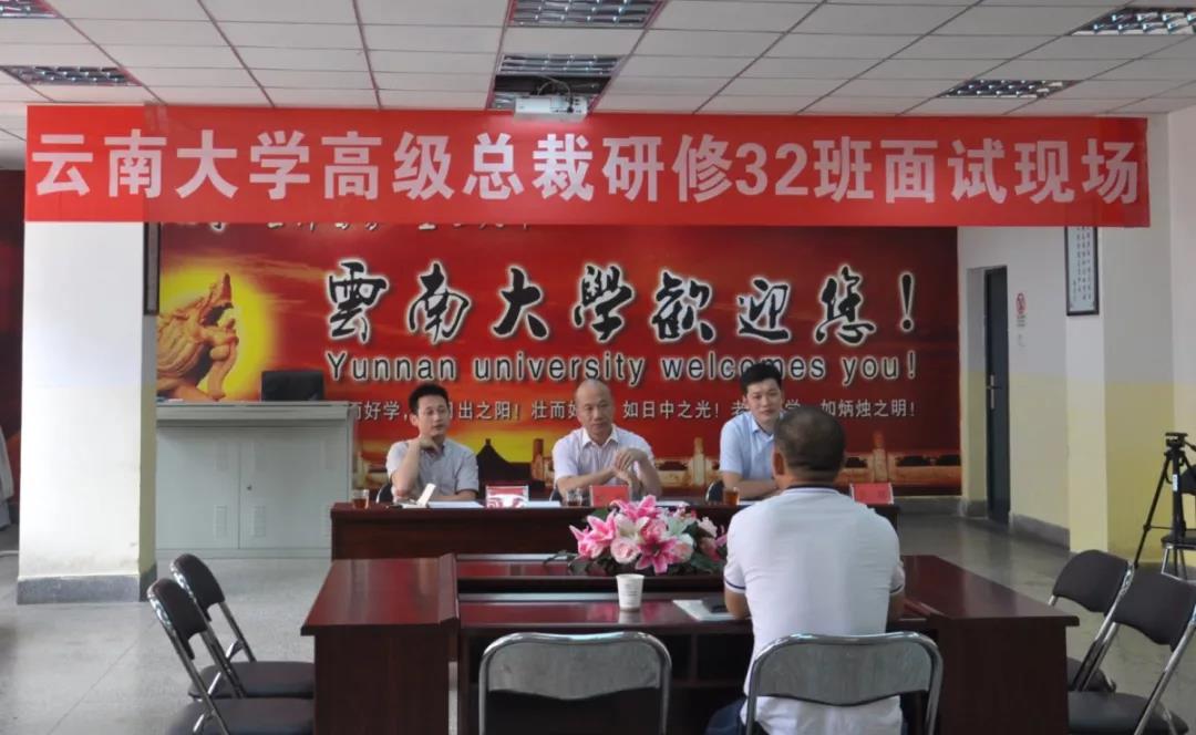 2019年7月11日上午,云南大学第32期创新型高级总裁研修班学员面试于云南大学成教楼正式开始。面试官有刘创教授,赵海博老师,王玮老师。来自各省各地的学员参加了面试,他们都是企业的董事长、总裁、总经理等。之前可能都是他们去面试别人,现在他们选择来到云南大学参加我们总裁班的面试以争取得到继续学习的机会。
