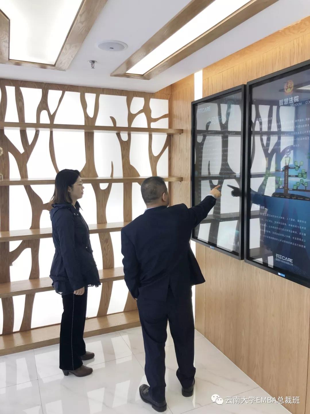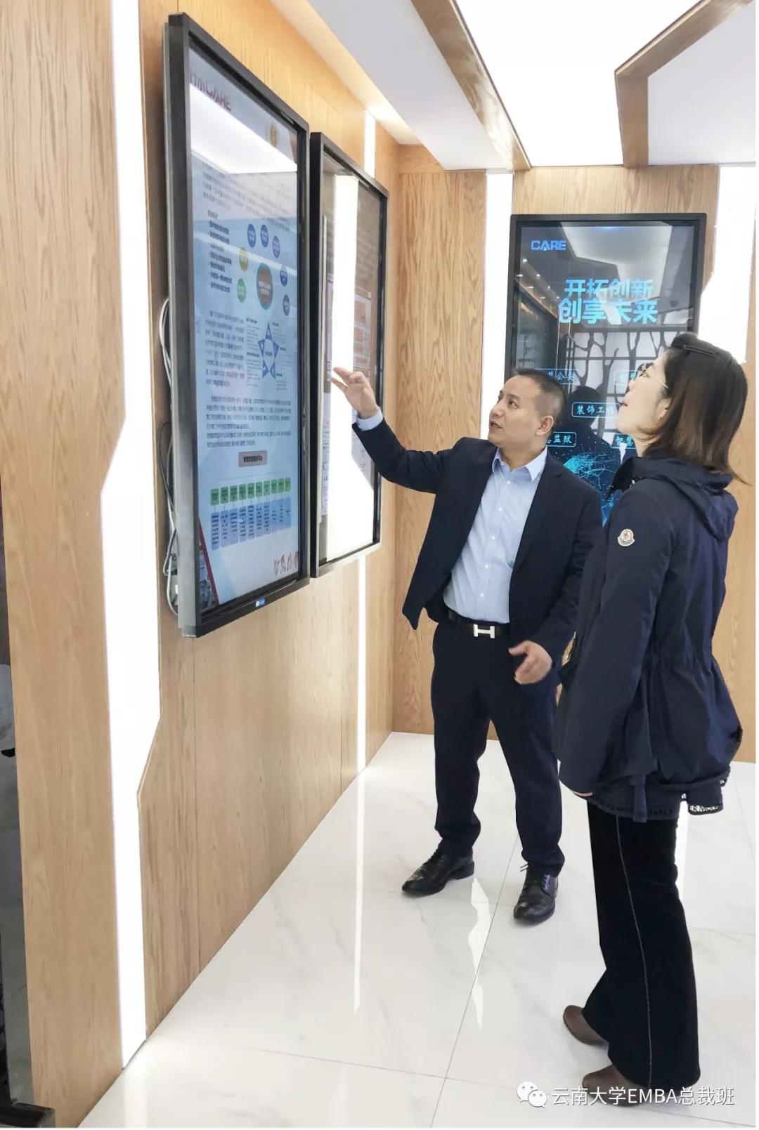 昆明开尔科技有限公司的领导郑少峰董事长、副总经理刘玉琴对云大高管中心张主任等老师的到来表示热情欢迎,并带三位老师参观了公司,介绍了公司的销售部、行政人事部、财务部、技术部、工程部、售后服务部、物流采供部、装饰设计部等部门,以及独立公司的产品。对公司的发展历程进行了简单的介绍,分享了企业所提倡的价值观、文化、理念与使命。