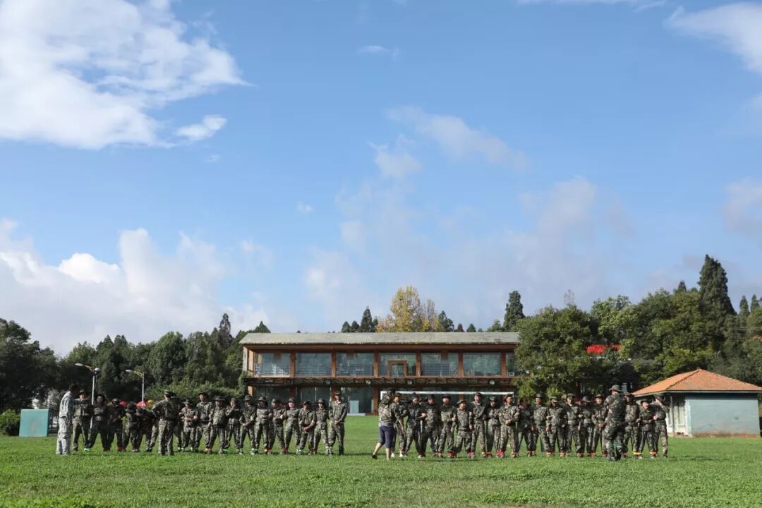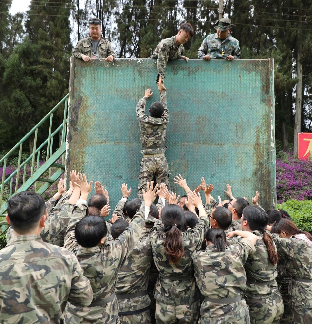 训练的最后一个科目是翻越毕业墙。面对4米的光滑墙面,不能借助任何外力,在不允许说话的情况下,搭人墙,踩肩膀,托手臂,翻越毕业墙,这近乎是残酷的。我们来自不同的天和地,而为了一个共同的目的,甘心背负着同伴的踩踏而没有一句怨言,站在高高的四米墙下,仰望着前方满脸汗水的伙伴,凝视着墙下坚持不懈的同学们,内心深受鼓舞,感动久久难平……