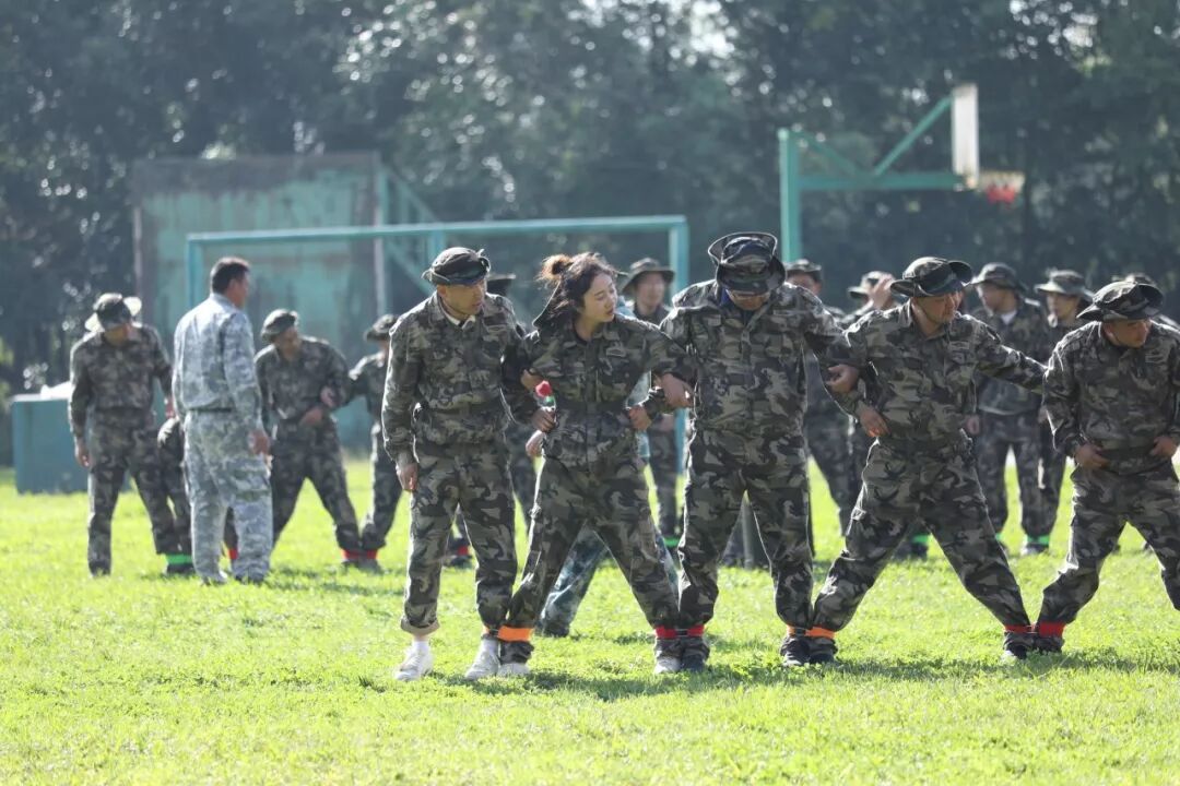 “信任背摔”项目中,同学们依次站到小高台上,背向后倒在下面队员用胳膊交叉的网上。看似简单,却饱含深意:“信任是沟通的基础,信任是管理的桥梁”。这次的挑战,同学们感受到了换位思考的重要性,信任的种子此刻在彼此心中发芽。