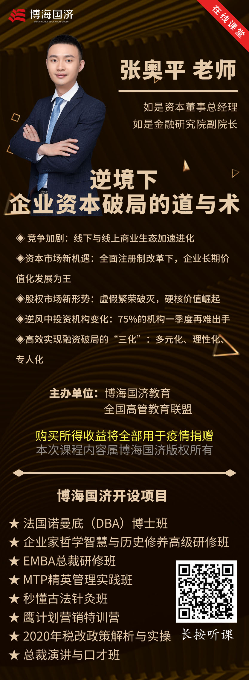 如是资本董事总经理张奥平老师将重点从疫情变局下资本市场的新机遇、新形势,以及企业如何融资破局等方面为大家详细解读。